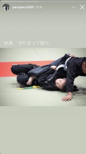 年齢カテゴリーを2つも下げての試合でしたが、アマゾン先生がボトムからクロスカラーグリップでコントロールして相手にルーチ2つ。