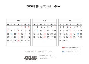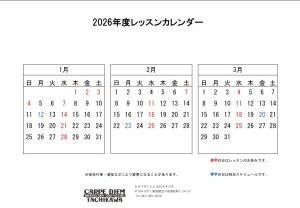 CARPE DIEM TACHIKAWA 2026年1月~3月スケジュールと営業日カレンダーのご案内